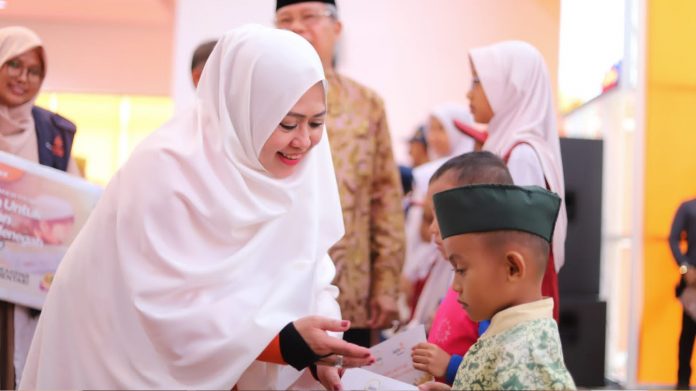 “Pemerintah sangat mendorong keberlangsungan Pendidikan seperti ini pemberian beasiswa untuk seluruh pelahar Tingkat SD dan SMP. Intinya kalau orang yang suka berbagi, justru hartanya akan bertambah, dan menjadi pahala,”. Ucap Erna Rasyid Taufan.