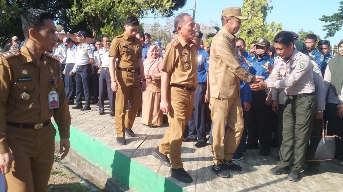 SMARTNEWSCELEBES.COM, PAREPARE – Penjabat Wali Kota Parepare, Akbar Ali menjadi inspektur apel perdana di hadapan seluruh jajaran ASN Pemerintah Kota Parepare di halaman Kantor Wali Kota Parepare, Senin (6/11/2023)