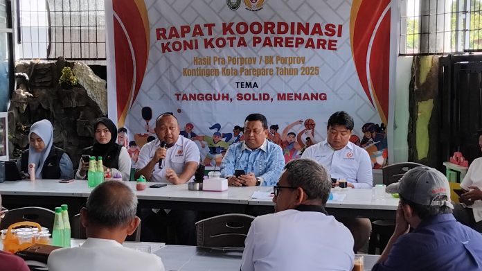 SMARTNEWSCELEBES.COM, PAREPARE – KONI Kota Parepare menggelar rapat koordinasi membahas hasil pra Pekan Olahraga Provinsi (Porprov) dan Badan Koordinasi (BK) Porprov tahun 2025 pada Senin (29/12/2025) di salah satu kafe lokal dengan mengusung tema “Tangguh, Solid, Menang”.