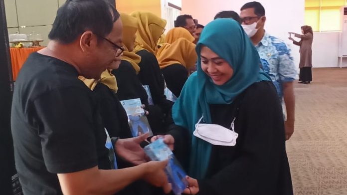 Pada kegiatan tersebut, Ketua DPD II Golkar Parepare ini membagikan sejumlah buku kepada para guru yang menulis cerpen pada Buku Harapan Manis. (*smartnews)