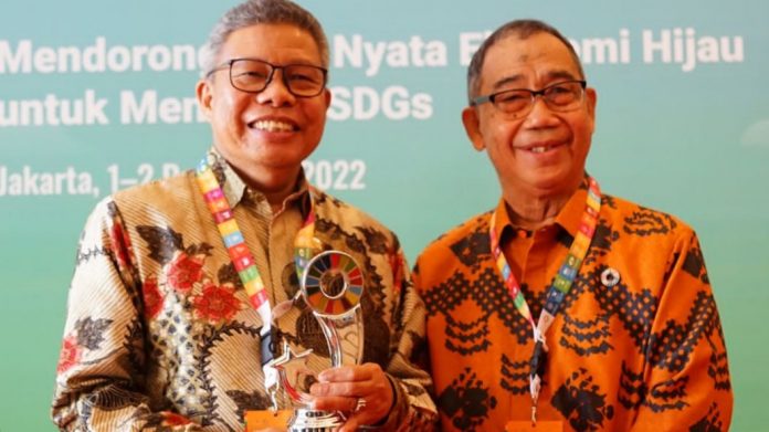 Penghargaan diserahkan langsung Menteri PPN/Kepala Bappenas, Suharso Monoarfa kepada Wali Kota Parepare, Taufan Pawe dalam Konferensi Tahunan Tujuan Pembangunan Berkelanjutan (TPB/SDGs) Indonesia Tahun 2022 di The Sultan Hotel Jakarta, Kamis, 1 Desember 2022.