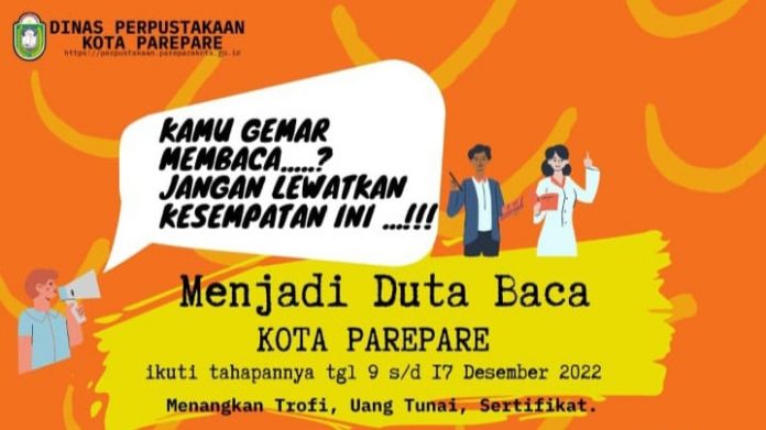 SMARTNEWSCELEBES.COM,, PAREPARE – Pemerintah Kota Parepare melalui Dinas Perpustakaan, menggelar pemilihan Duta Baca Kota Parepare. Tahapan kegiatan tersebut dimulai pada tanggal 9 hingga 17 Desember mendatang.