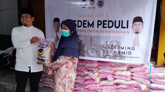 SMARTNEWSCELEBES.COM, PAREPARE – Legislator DPRD Parepare Tasming Hamid menyalurkan bantuan beras kepada ratusan warga di Kecamatan Ujung dan Soreang.