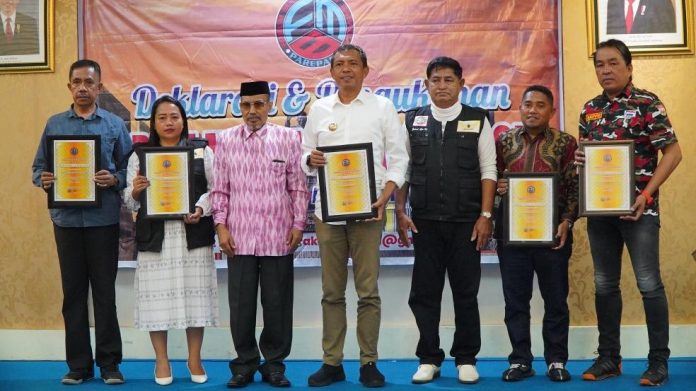 Penghargaan diserahkan oleh Ketua FMB Zainal Azis Mandeng di sela pengukuhan dan deklarasi FMB di Barugae, Rumah Jabatan Wali Kota Parepare.