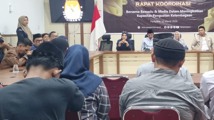 SMARTNEWSCELEBES.COM, PAREPARE – Komisi Pemilihan Umum (KPU) Kota Parepare menggelar rapat koordinasi bersama Badan Pengawas Pemilu (Bawaslu) serta sejumlah insan media dalam rangka meningkatkan kapasitas dan memperkuat kelembagaan penyelenggara pemilu.