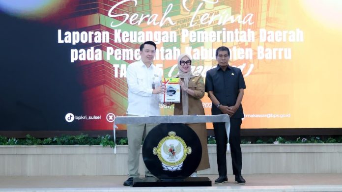 Penyerahan tersebut dilakukan langsung oleh Bupati Barru bersama sejumlah kepala daerah se-Sulawesi Selatan kepada Kepala BPK RI Perwakilan Sulsel, Winner Franky Halomoan Manalu.